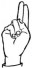 На ћирилици написано МИНА ПАЧАНИН састоји се из 11 слова [?]. Исписано ћириличном једноручном азбуком за глувонеме: